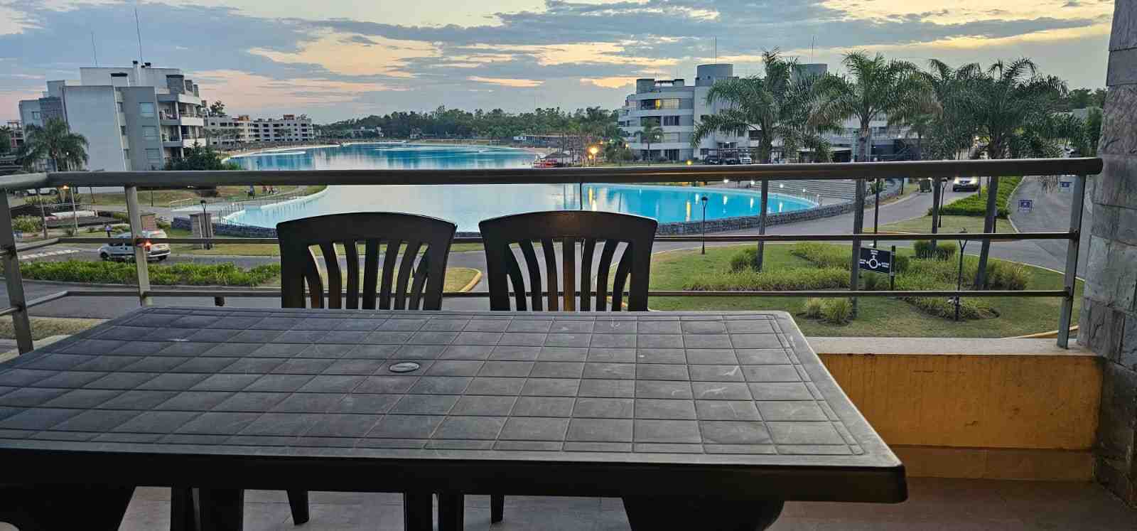 Ubicado en PA, cuenta con un dormitorio con sommier de 2 plazas, living-comedor amplio y luminoso con juego de mesa y sillas, led de 32´´ con rack, cocina con bajomesada y alacena y aparato de cocina con horno. Todos los ambientes cuentan con aire acondicionado frío/calor. Desde el balcón terraza se puede disfrutar de una parrilla y una vista inmejorable a la laguna e incluye juego de mesa y sillas.