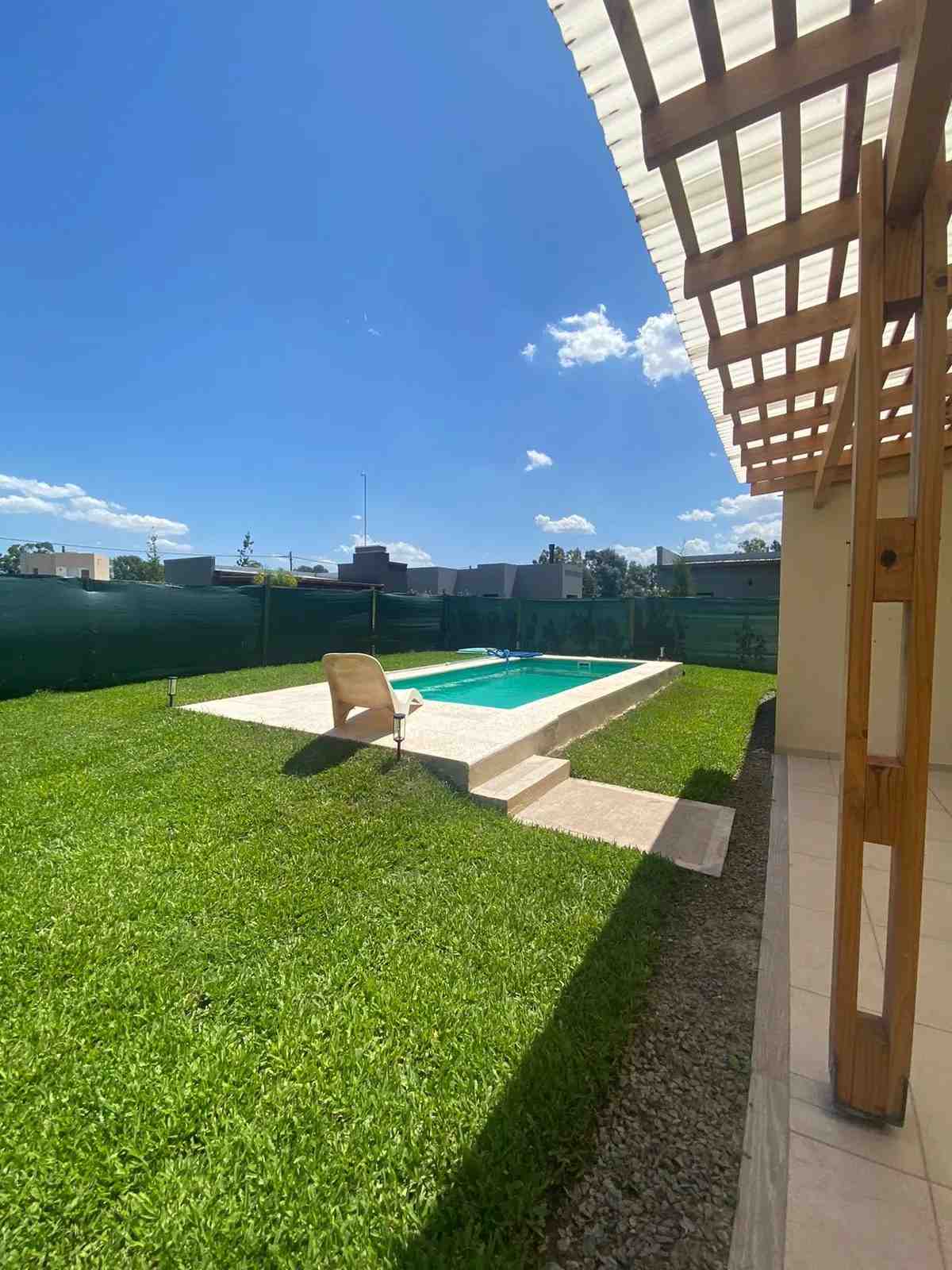 Cochera para 3 vehículos, patio y piscina.