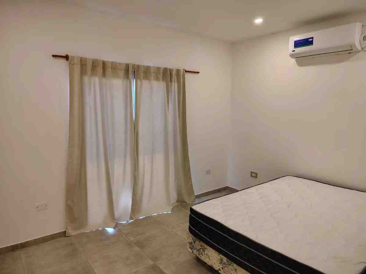 Tiene aire acondicionado instalado en la habitación principal, en una de las secundarias, y también en la cocina/living/comedor.