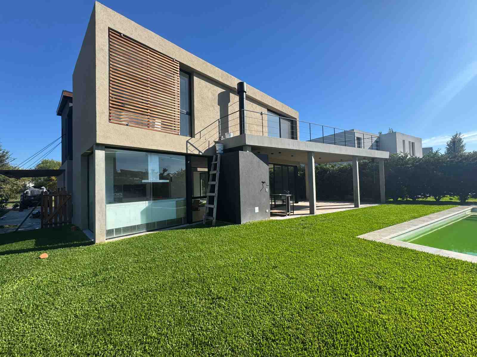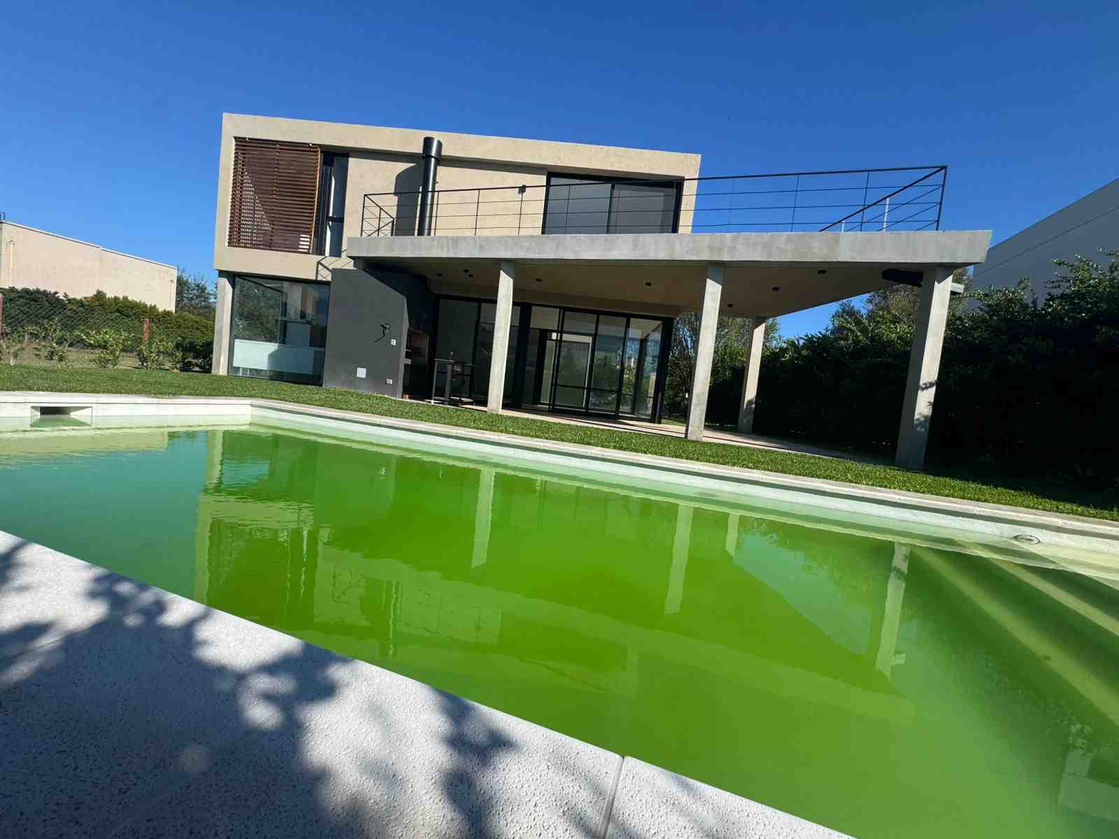 Living-comedor-cocina integrado amplio, con salida a galería semi cubierta con parrilla, piscina de 8x4m revestida en venecita.