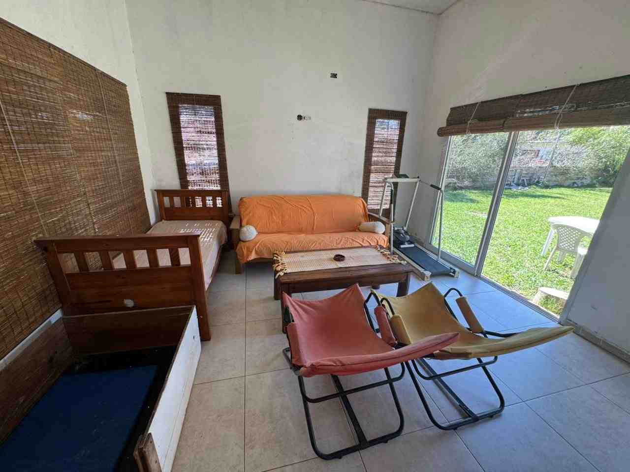 Casa a la venta en uno de los mejores barrios abiertos de pilar, las nazarenas/ los mirasoles, a unas 8 cuadras de panamericana km 51, edificada en una planta sobre un lo lotazo de 800 m2 con pileta de fibra de vidrio. Además cuenta con una cabaña independiente al fondo. La casa tiene pendiente del revestimiento de Tarquini y pintura interior. Cuenta con un dormitorio, aunque amplio espacio para edificar hacia atrás dos dormitorios más, cocina comedor, living, un baño totalmente instalado, portón automático, agua con perforación y bomba sumergible, split de aire acondicionado frío calor en el dormitorio, ventilador de techo en el living, servicios de energía eléctrica y gas natural, consta de 120 m2 cubiertos y 800 m2 de lote, con escritura lista para transferirse. Los planos de obra no están actualizados.