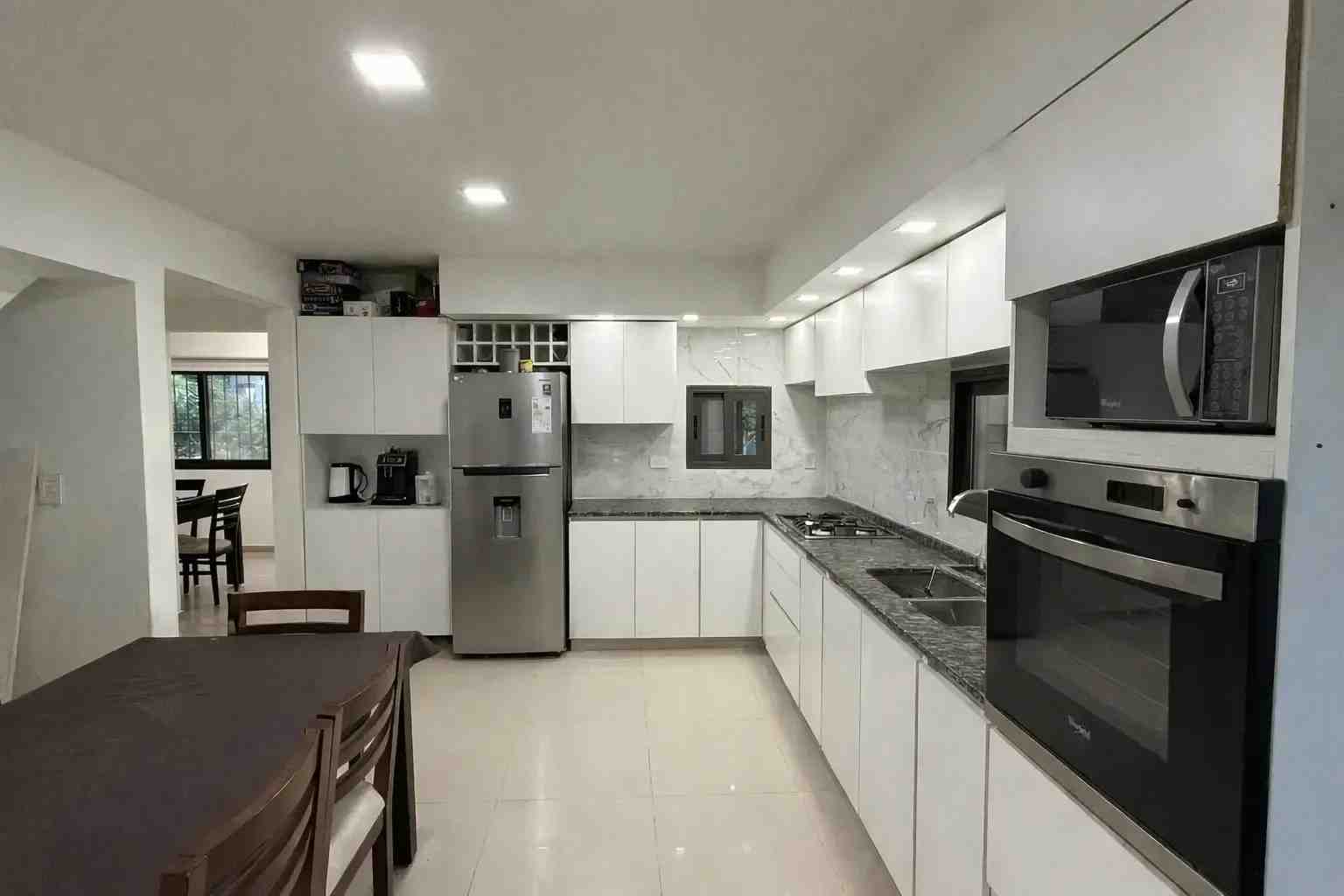 • Cocina semi integrada, de generosas dimensiones, con espacio para mesa de 6 sillas