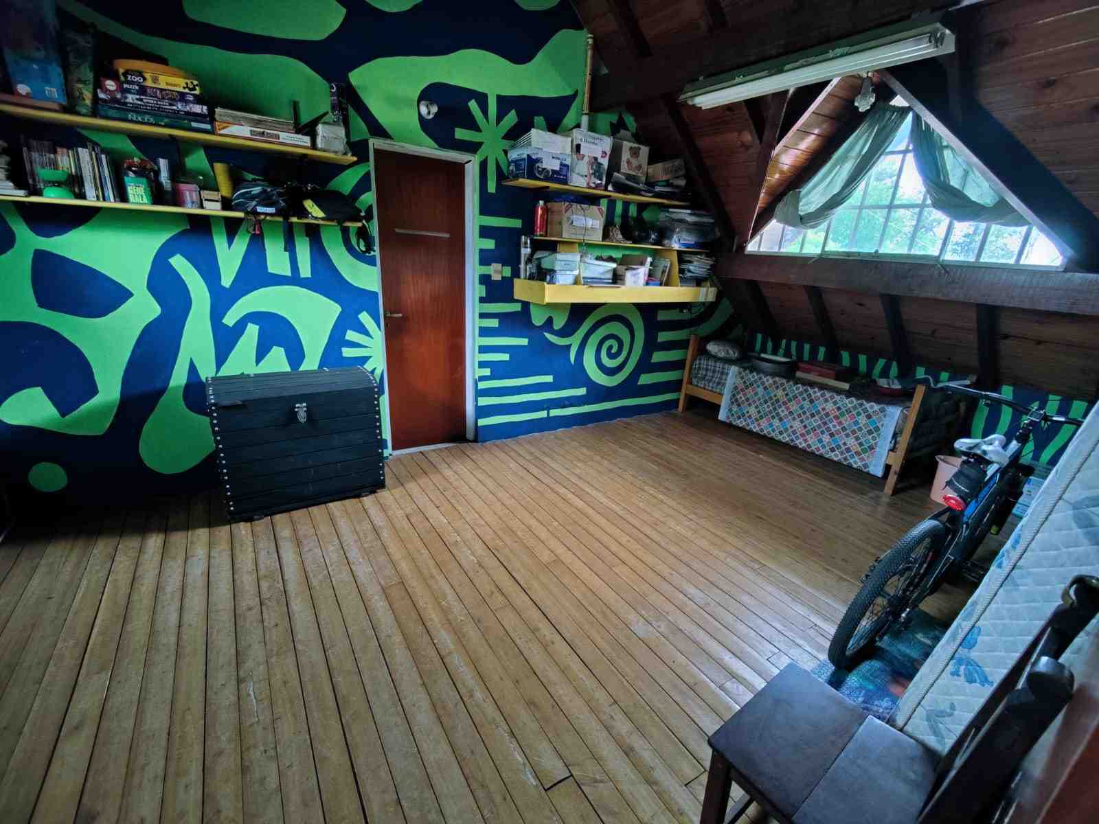 - Playroom grande, espacioso con un armario de pared a pared a lo ancho de la estancia. Superficie aprox. 18m². Ventanas en cada lado.